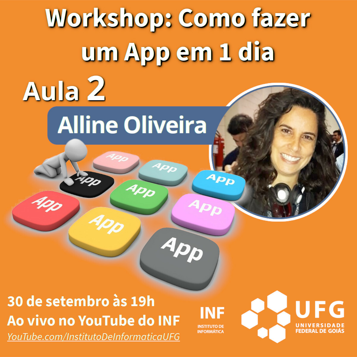 Na próxima quarta-feira, 30 de setembro, às 19h, no canal do YouTube do INF, acontece a segunda aula do workshop "Como fazer 1 App em 1 dia", apresentado pela CEO e CTO da Crebit Alline Oliveira.