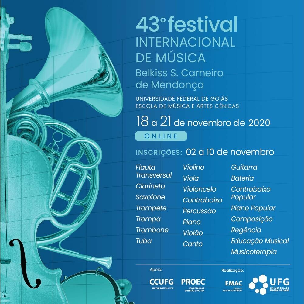 Entre os dias 18 e 21 de novembro, será realizado pela Escola de Música e Artes Cênicas da UFG, (EMAC/UFG), o 43° Festival Internacional de Música.