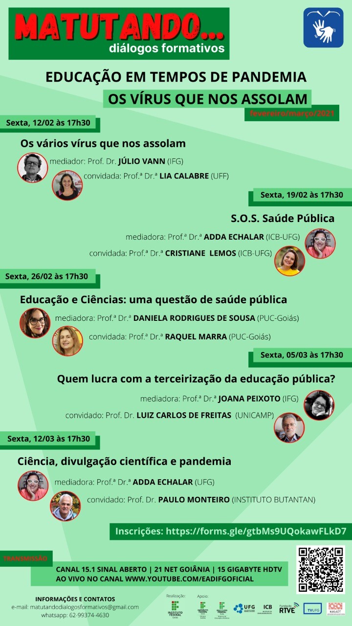 Matutando: diálogos formativos Evento Local: Youtube EADIFGOFICIAL Data do Evento : 12 de Março 2021 às 17:30 TweetWhatsApp Listar Todas Voltar