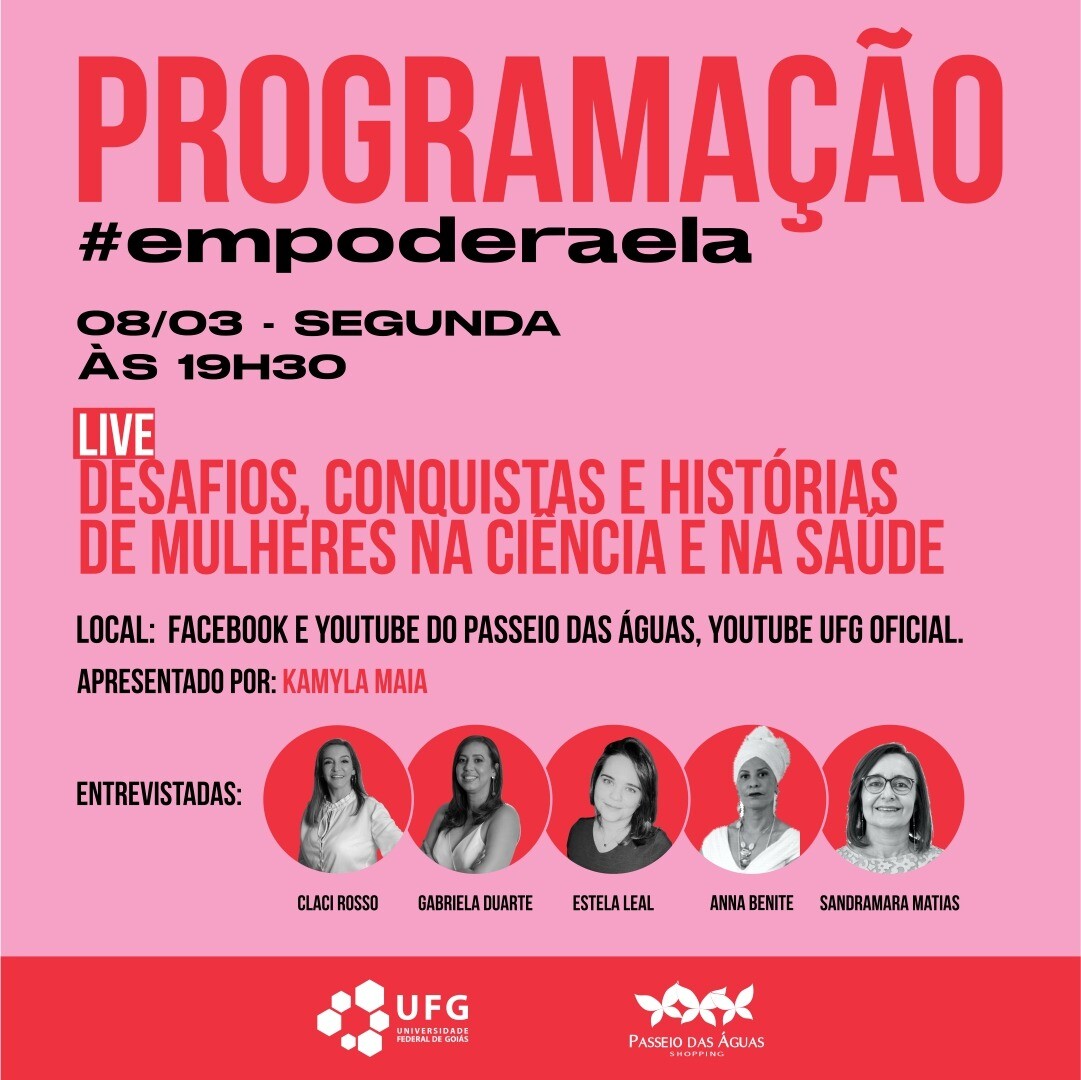 Programação #empoderaela Evento Local: Youtube e Facebook Passeio das Águas Data do Evento : 08 de Março 2021 às 19:00 TweetWhatsApp Listar Todas Voltar