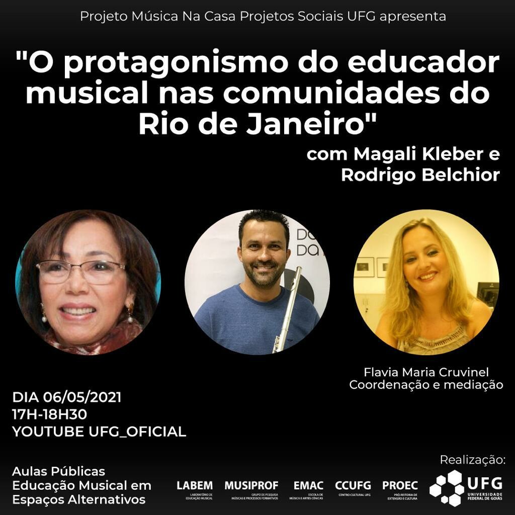 Aula pública "O protagonismo do educador musical nas comunidades do Rio de Janeiro" Event Local: YouTube UFG Oficial Event date : May 06, 2021 at 17:00 Para assistir ao evento, clique aqui TweetWhatsApp List all Back