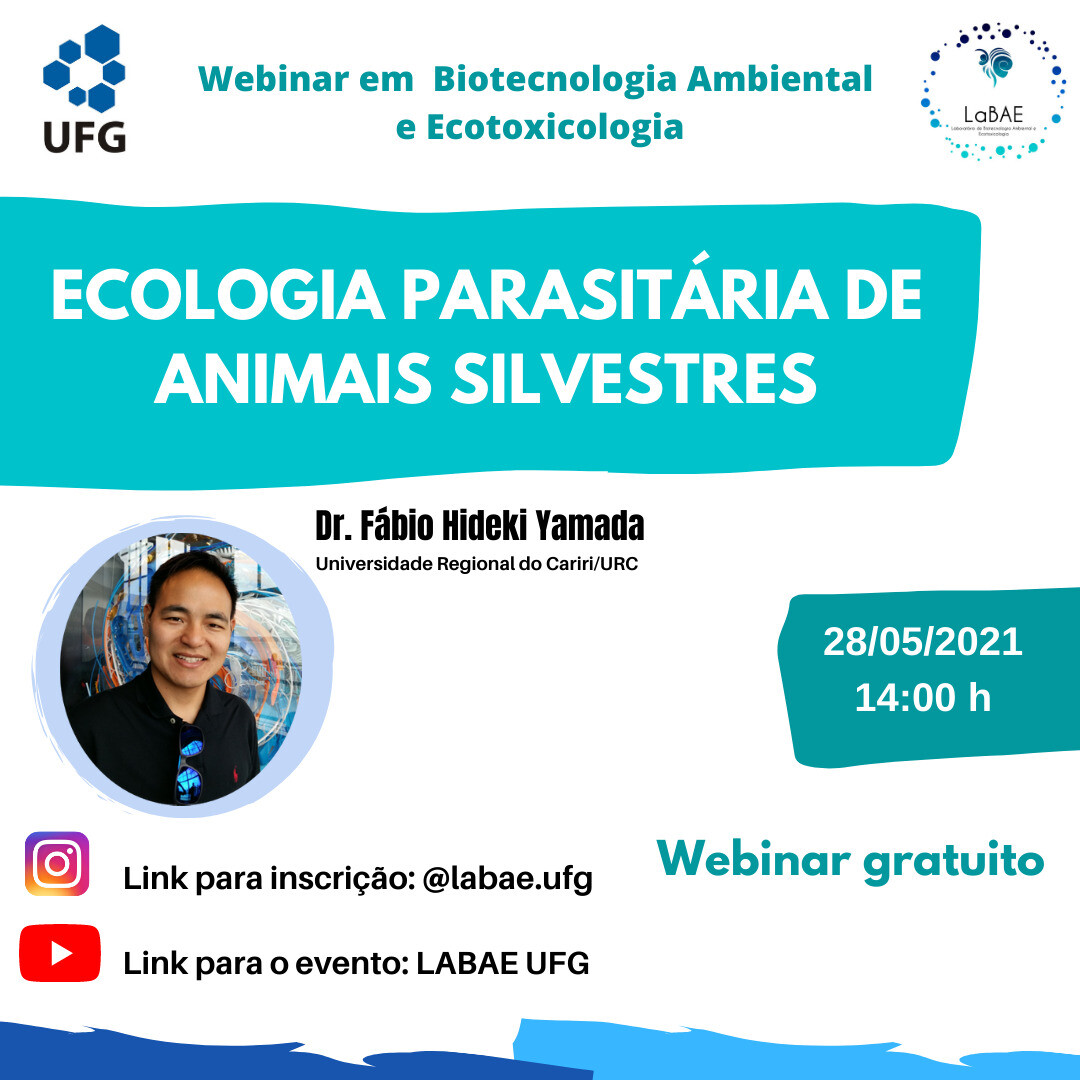 O Laboratório de Biotecnologia Ambiental e Ecotoxicologia (LaBAE), do Instituto de Patologia Tropical e Saúde Pública (IPTSP), da Universidade Federal de Goiás (UFG), coordena um ciclo de Webinar em Biotecnologia Ambiental e Ecotoxicologia. O evento é gratuito e aberto ao público e contribui na divulgação científica de temas nesta área de pesquisa, a qual tem ganhando cada vez mais destaque devido à crescente poluição dos ecossistemas aquáticos, bem como uso de modelos animais alternativos na pesquisa científica.