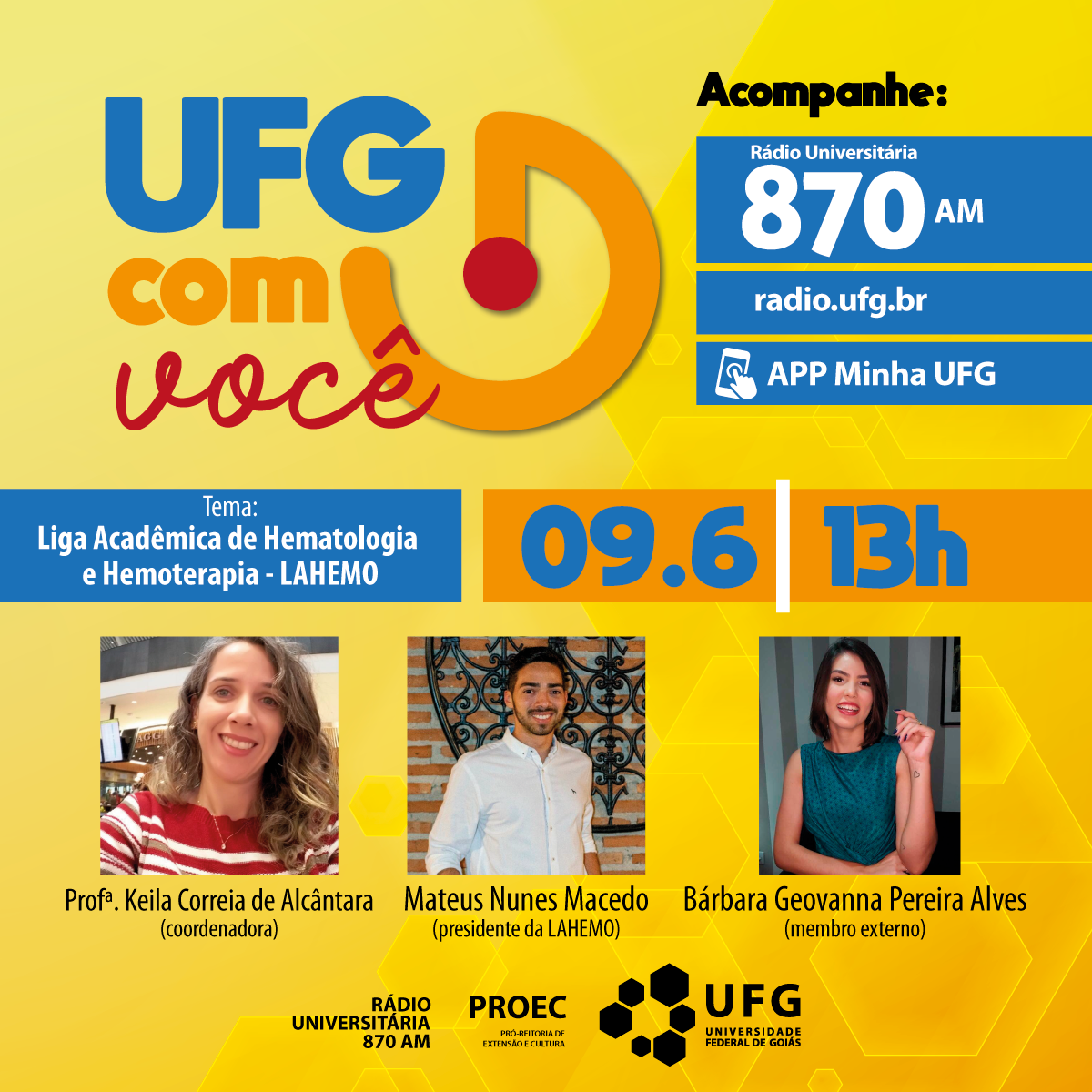 UFG com Você: Liga Acadêmica de Hematologia e Hemoterapia Evento Local: Rádio Universitária 870 AM e app Minha UFG Data evento : 09 giugno 2021 alle 13:00 TweetWhatsApp Elenca tutto Volver