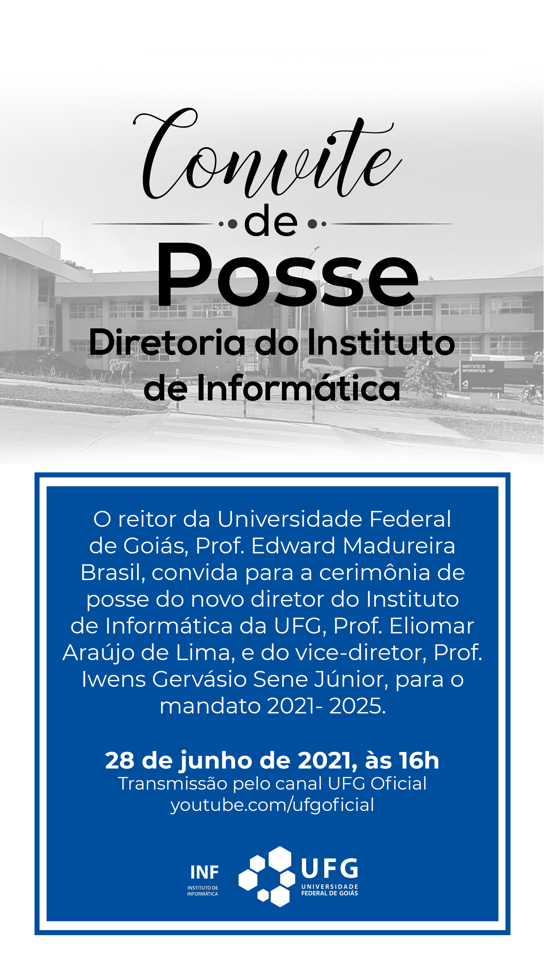 Cerimonia de posse da nova Diretoria do INF Événement Local: YouTube UFG Oficial Date de l'événement : 28 Junho 2021 às 16:00 Para assistir, clique aqui TweetWhatsApp Liste tous Voltar
