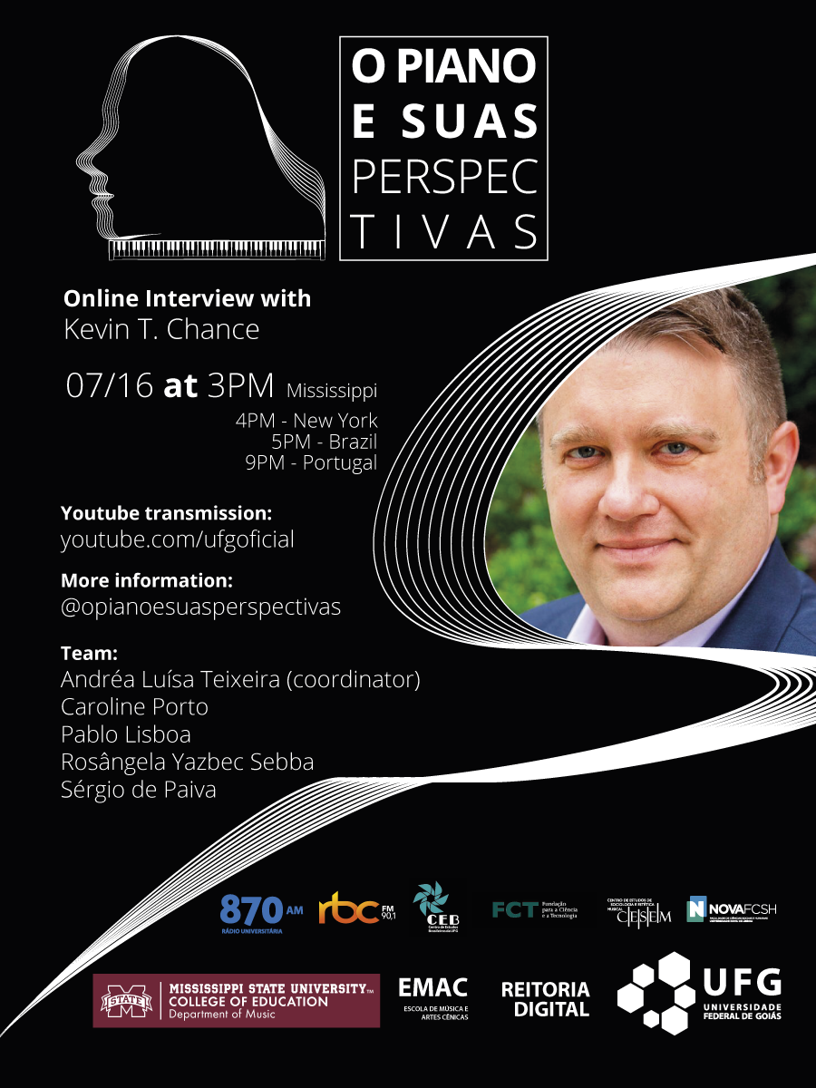O Piano e suas perspectivas: Kevin T. Chance Evento Local: Youtube UFG Oficial Fecha del Evento : 16 Julio 2021 a las 14:20 TweetWhatsApp Todas las páginas Volver