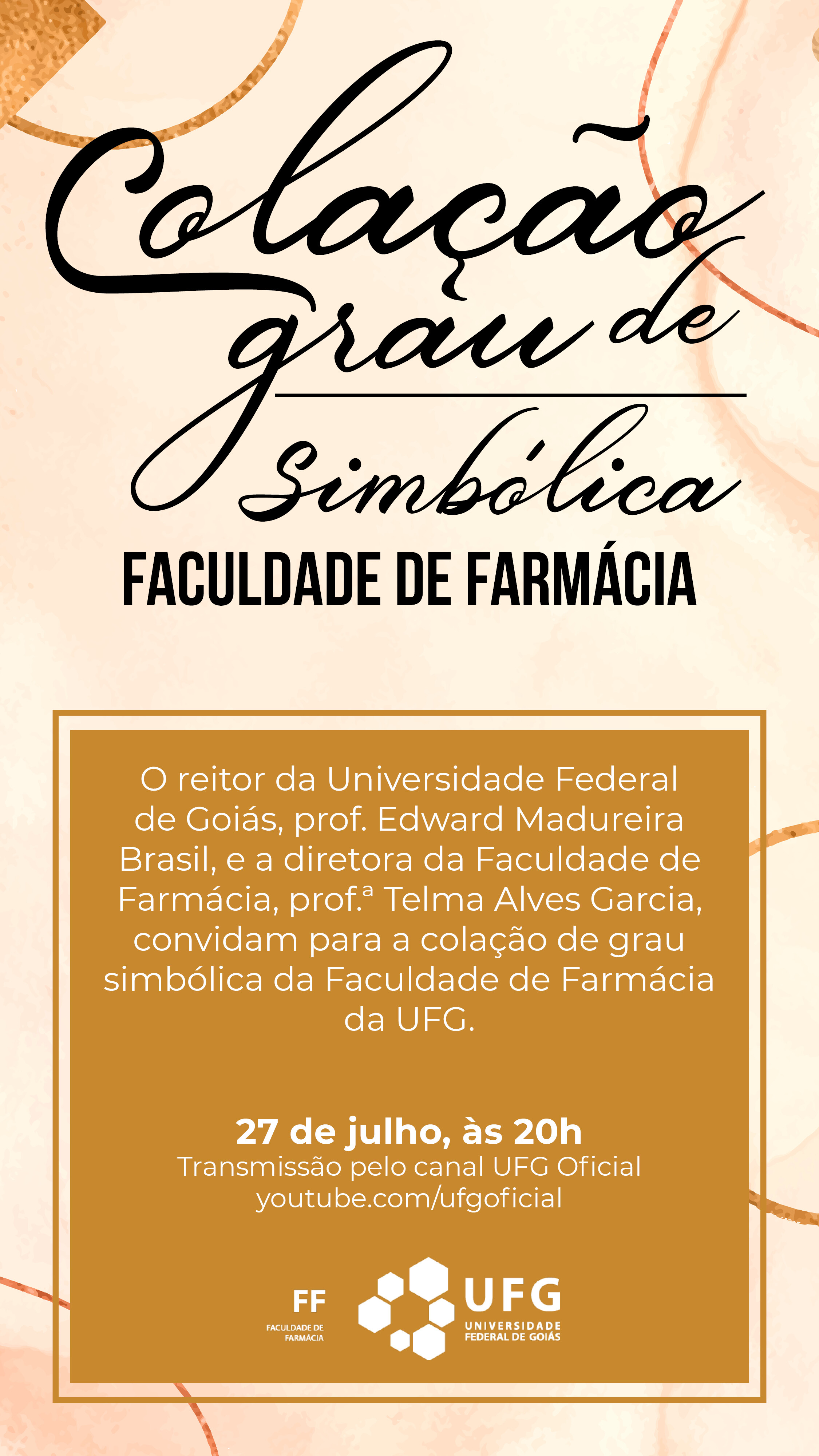 Colação Simbólica - Faculdade de Farmácia Event Local: Youtube UFG Oficial Event date : July 27, 2021 at 14:36 TweetWhatsApp List all Back