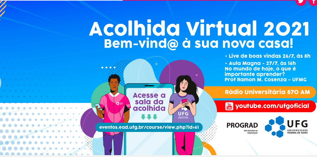 Acolhida Virtual 2021 - live de boas-vindas Ereignis Local: YouTube UFG Oficial e Rádio Universitária 870 AM Ereignisdatum : 26 Juli, 2021 at 08:00 TweetWhatsApp Alle auflisten zurück