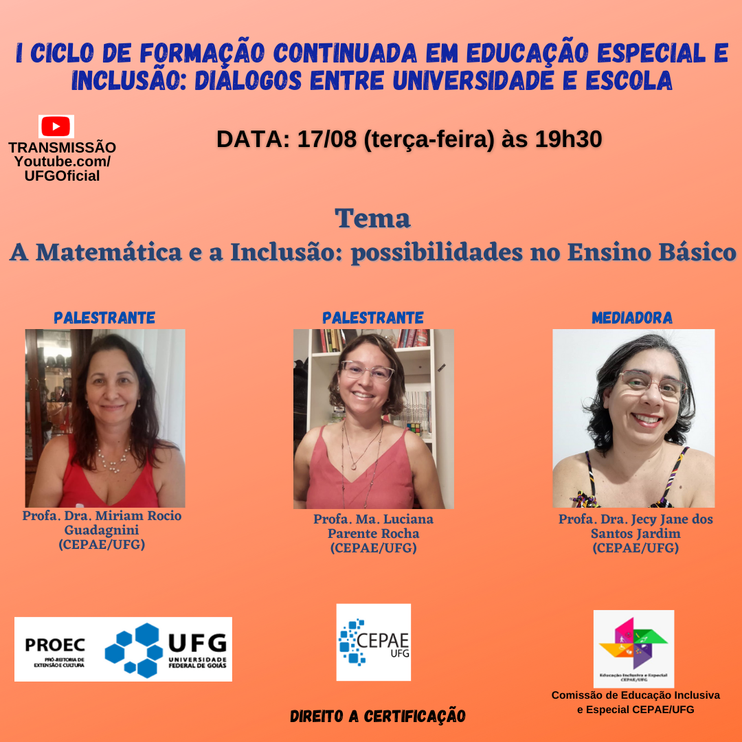 Clique no link para assistir aos demais encontros do I Ciclo de Formação Continuada em Educação Especial e Inclusão