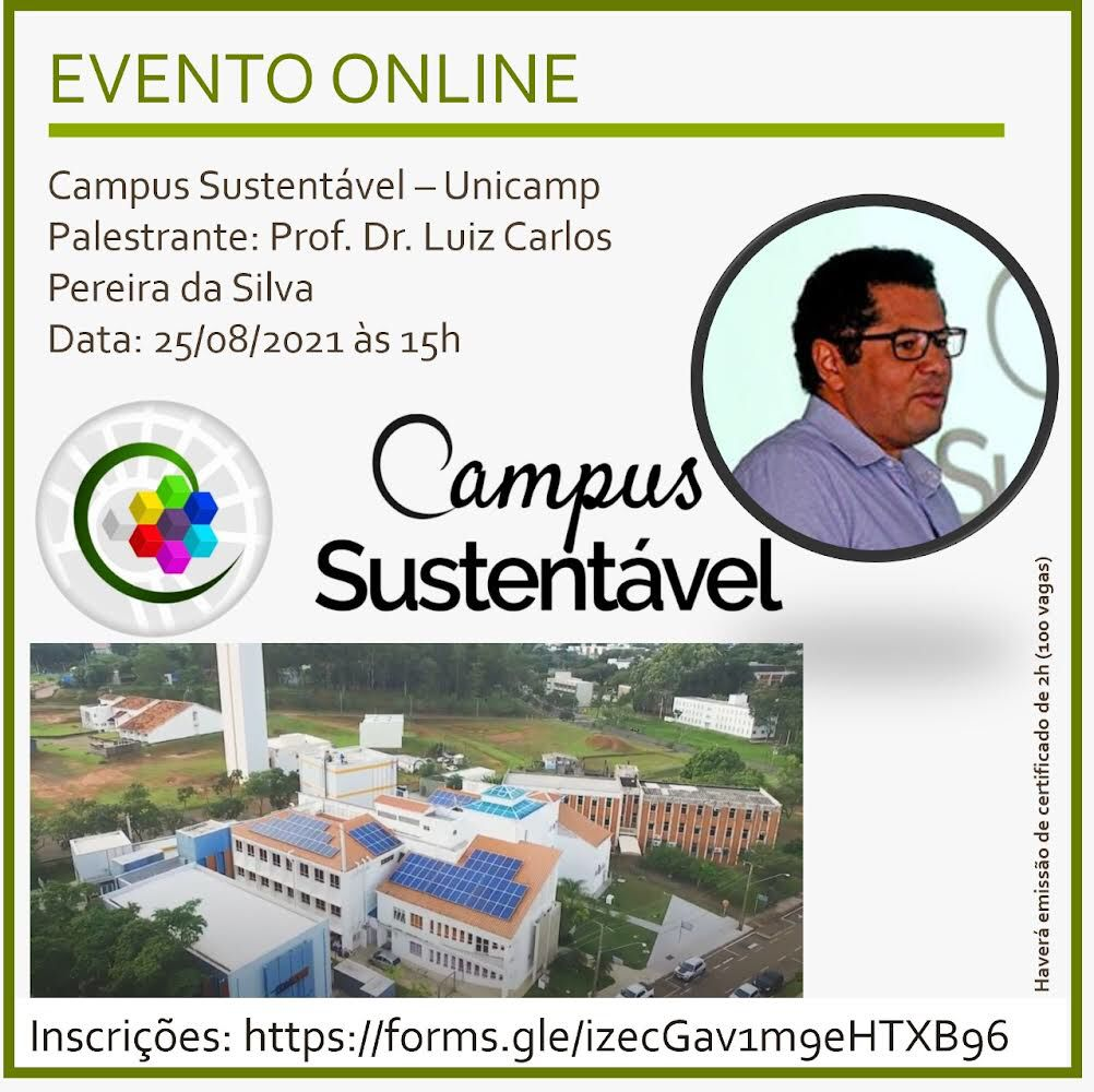 Palestra "Campus Sustentável - Unicamp" Event Local: On-line (mediante inscrições) Event date : August 25, 2021 at 15:00 Para se inscrever, clique aqui TweetWhatsApp List all Back