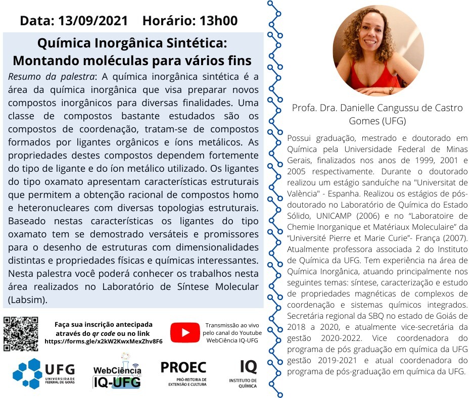 Webinário "Química inorgânica sintética: montando moléculas para vários fins"