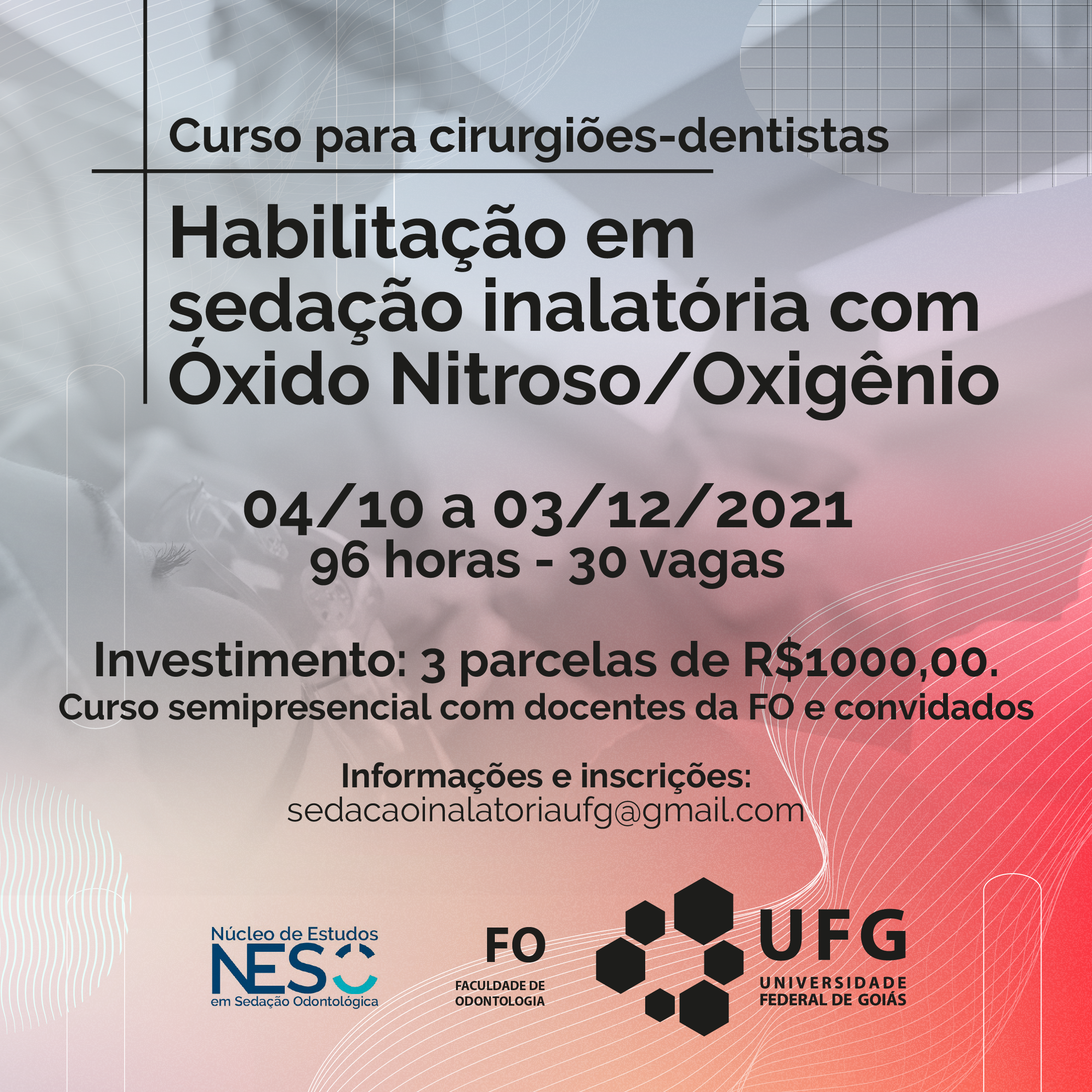 A equipe Neso/FO/UFG traz o Curso Neso de sedação inalatória com óxido nitroso e oxigênio, edição 2021, em um formato inovador que alia flexibilidade de horário e ensino por competências.