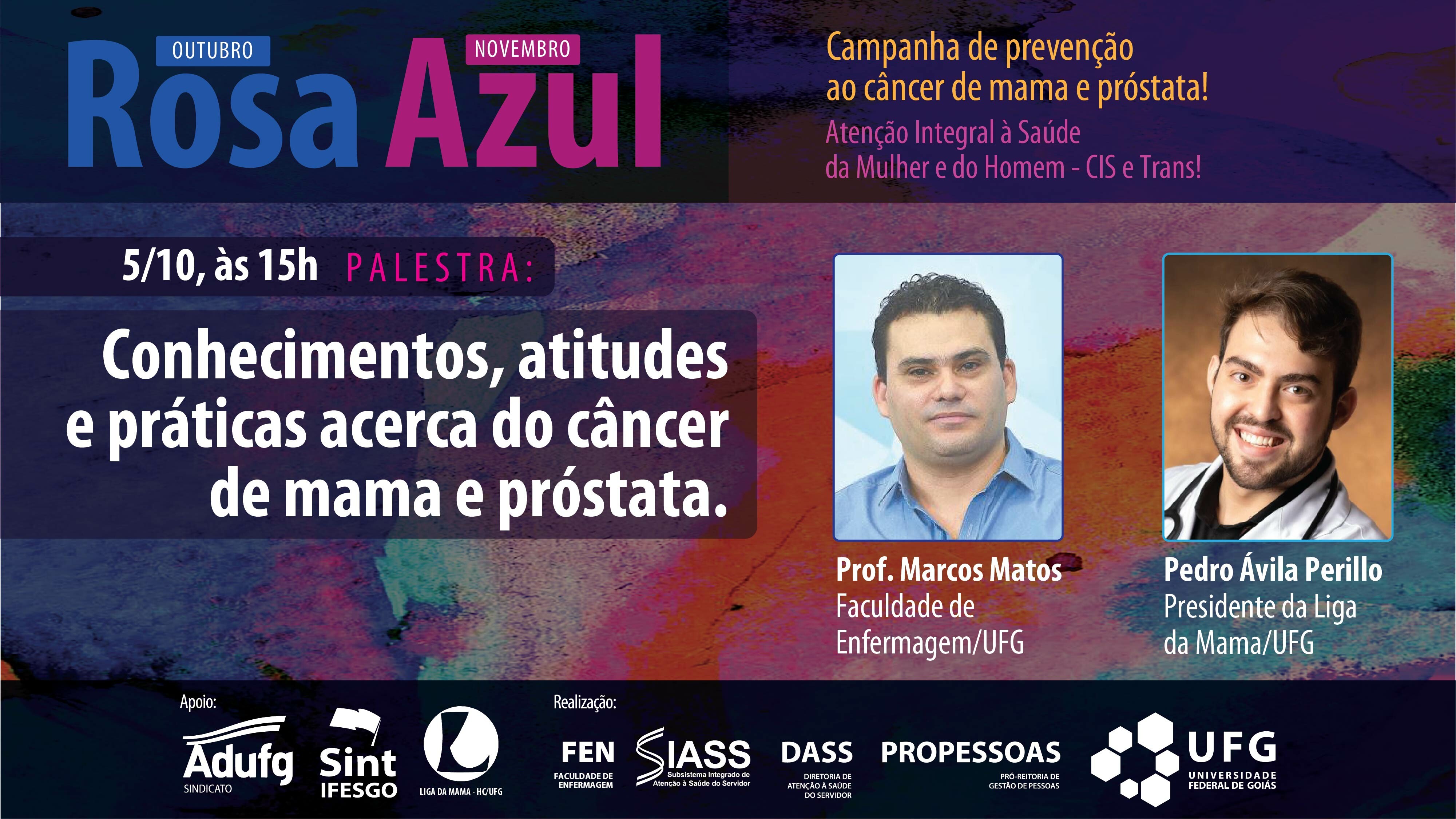 Palestra "Conhecimentos, atitudes e práticas acerca do câncer de mama e próstata" 事件 Local: YouTube UFG Oficial 活动日期 : 05 , 2021 at 15:00 Para assistir ao evento, clique aqui TweetWhatsApp 全部列出 Back