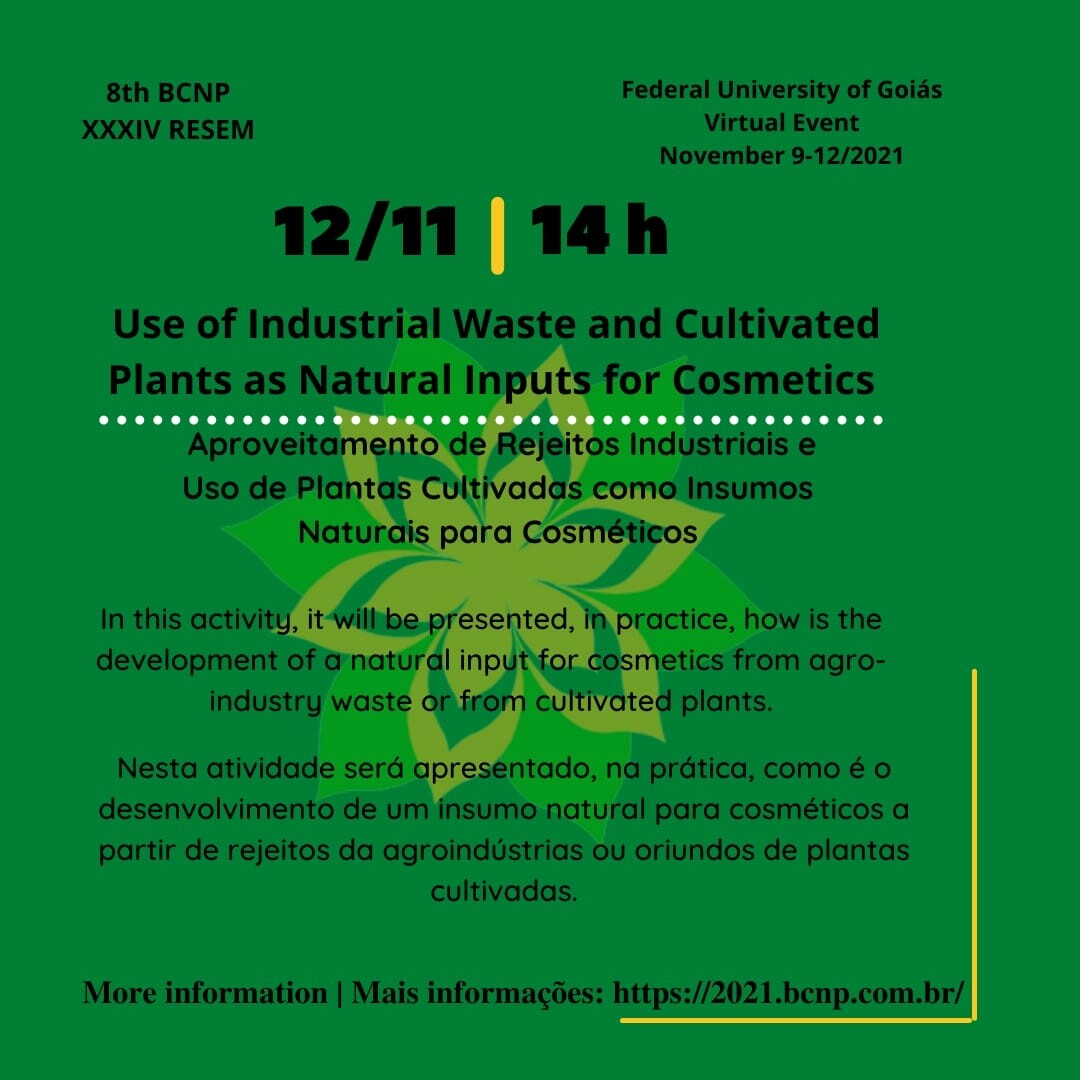 Título: Aproveitamento de rejeitos industriais e uso de plantas cultivadas como insumos naturais para cosméticos