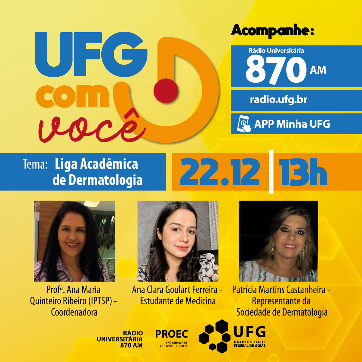 UFG com Você: "Liga Acadêmica de Dermatologia" Ereignis Local: Rádio Universitária - 870 AM, radio.ufg.br e app Minha UFG Ereignisdatum : 22 Dezember, 2021 at 13:00 TweetWhatsApp Alle auflisten zurück