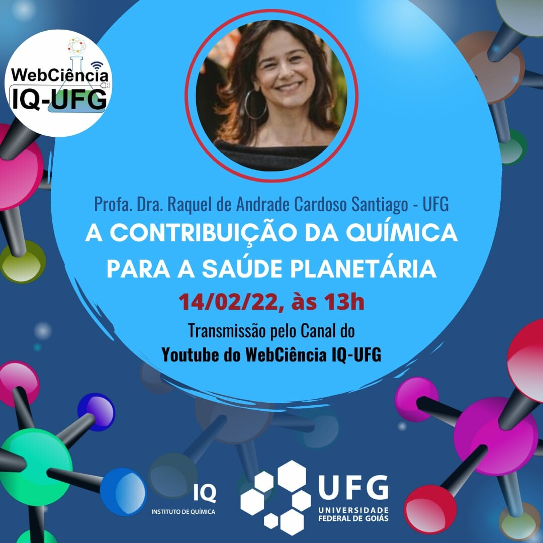 Webciência: A contribuição da Química para a saúde planetária Evento Local: Youtube do WebCiência IQ-UFG Data do Evento : 14 de Fevereiro 2022 às 13:00 TweetWhatsApp Listar Todas Voltar