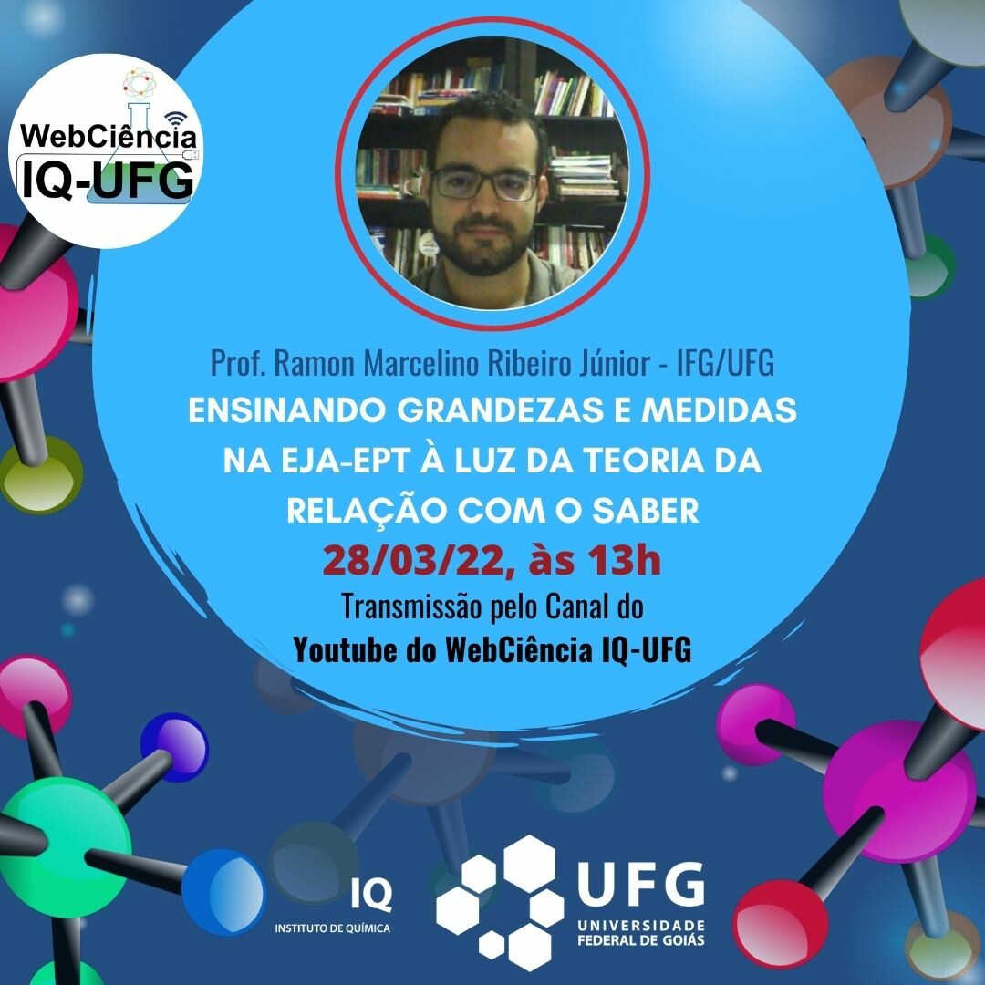 Webinário "Ensinando grandezas e medidas na EJA- EPT à luz da teoria da relação com o saber" Event Local: Youtube WebCiência IQ UFG Event date : March 28, 2022 at 13:00 Para assistir à transmissão do evento, clique aqui. TweetWhatsApp List all Back