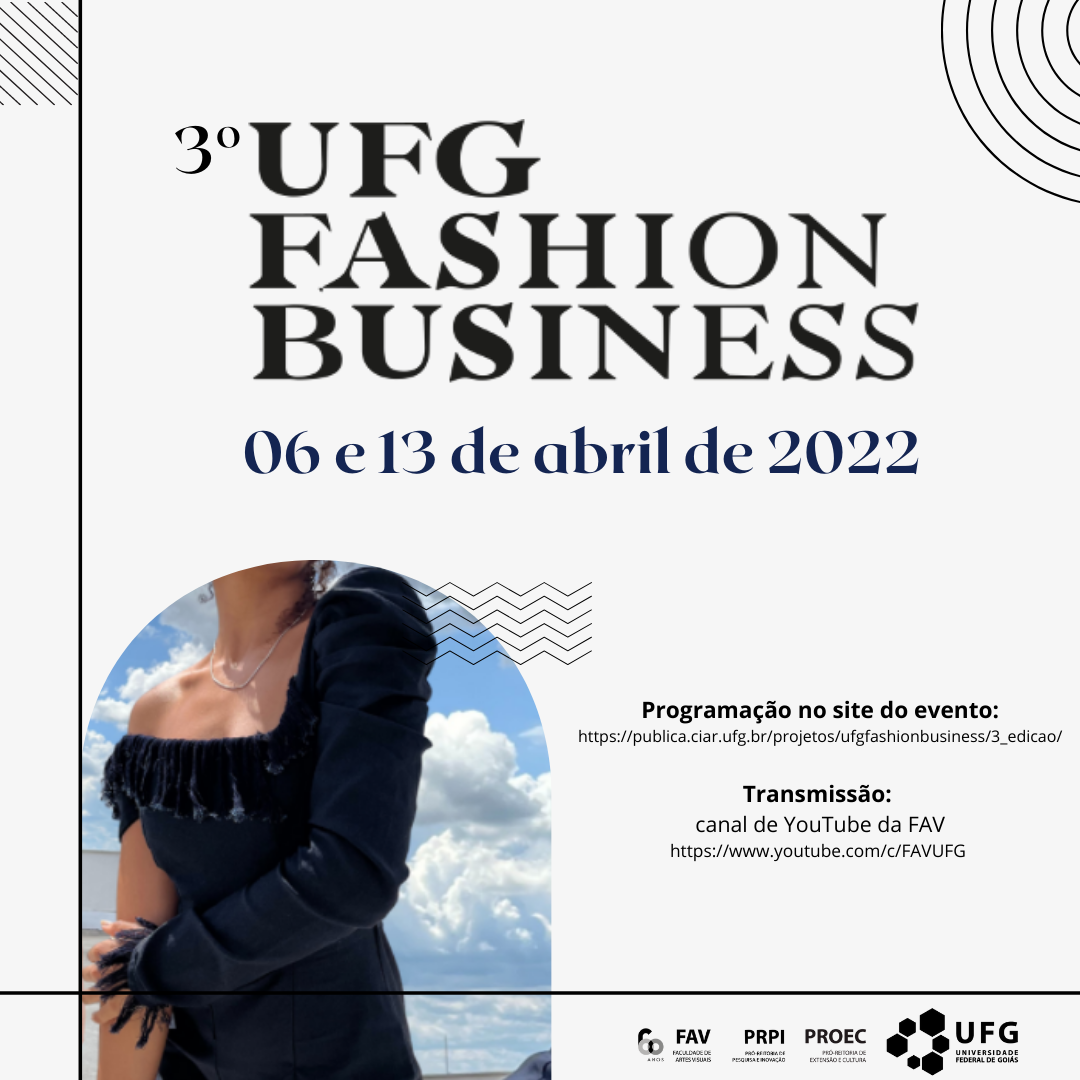 3º UFG Fashion Business Evento Local: YouTube FAV UFG Período do Evento : 06 a 13 de Abril 2022 Para saber mais sobre o evento, clique aqui. TweetWhatsApp Listar Todas Voltar