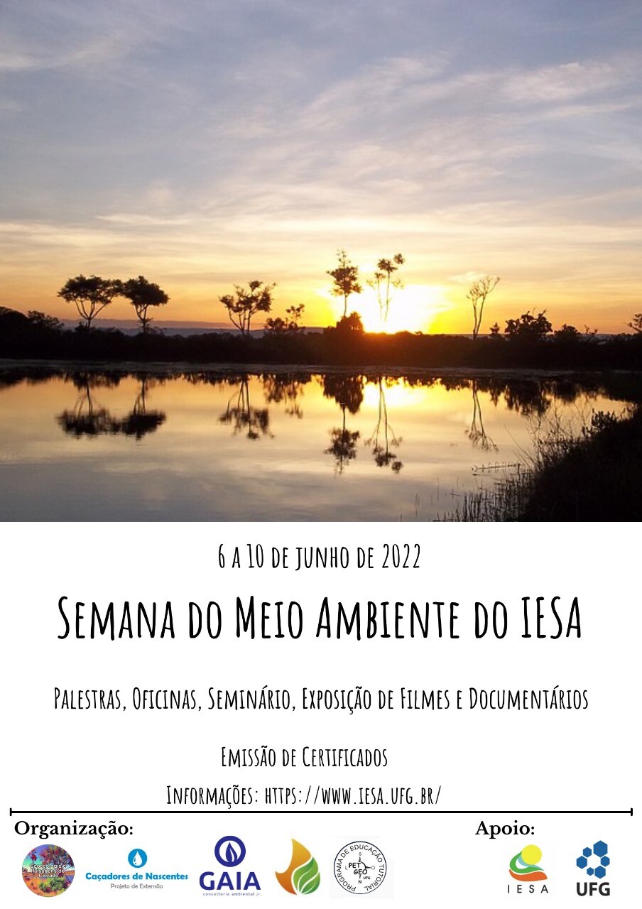 Semana do Meio Ambiente do Iesa Event Local: Iesa UFG Event period : June 06 - 10, 2022 Clique aqui para fazer a inscrição no evento TweetWhatsApp List all Back