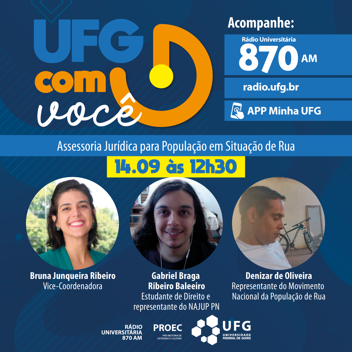 UFG com você "Assessoria jurídica para população em situação de rua" 事件 Local: Rádio Universitária - 870 AM, radio.ufg.br e App Minha UFG 活动日期 : 14 , 2022 at 12:30 TweetWhatsApp 全部列出 Back