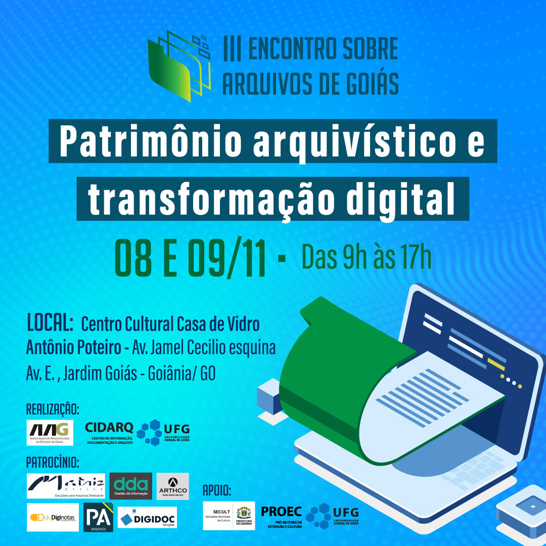 Após a descontinuidade do evento nos anos de 2018 e 2020, a AAG e o Cidarq/UFG se preparam para o III Encontro em 2022, dessa vez com a temática “Patrimônio Arquivístico e transformação digital”. O evento está sendo organizado para reunir os profissionais da área de arquivos que atuam no território goiano e demais interessados no tema. Com a parceria da Secretaria de Cultura do Município de Goiânia, será realizado no Centro Cultural Casa de Vidro Antônio Poteiro.
