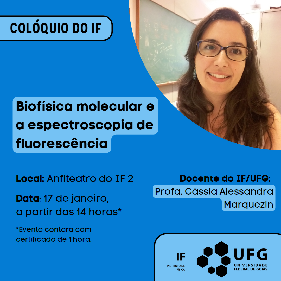 Colóquio do IF - Biofísica Molecular e a espectroscopia de fluorescência Evento Local: Anfiteatro do IF2 - Instituto de Física Data do Evento : 17 de Janeiro 2023 às 14:00 TweetWhatsApp Listar Todas Voltar