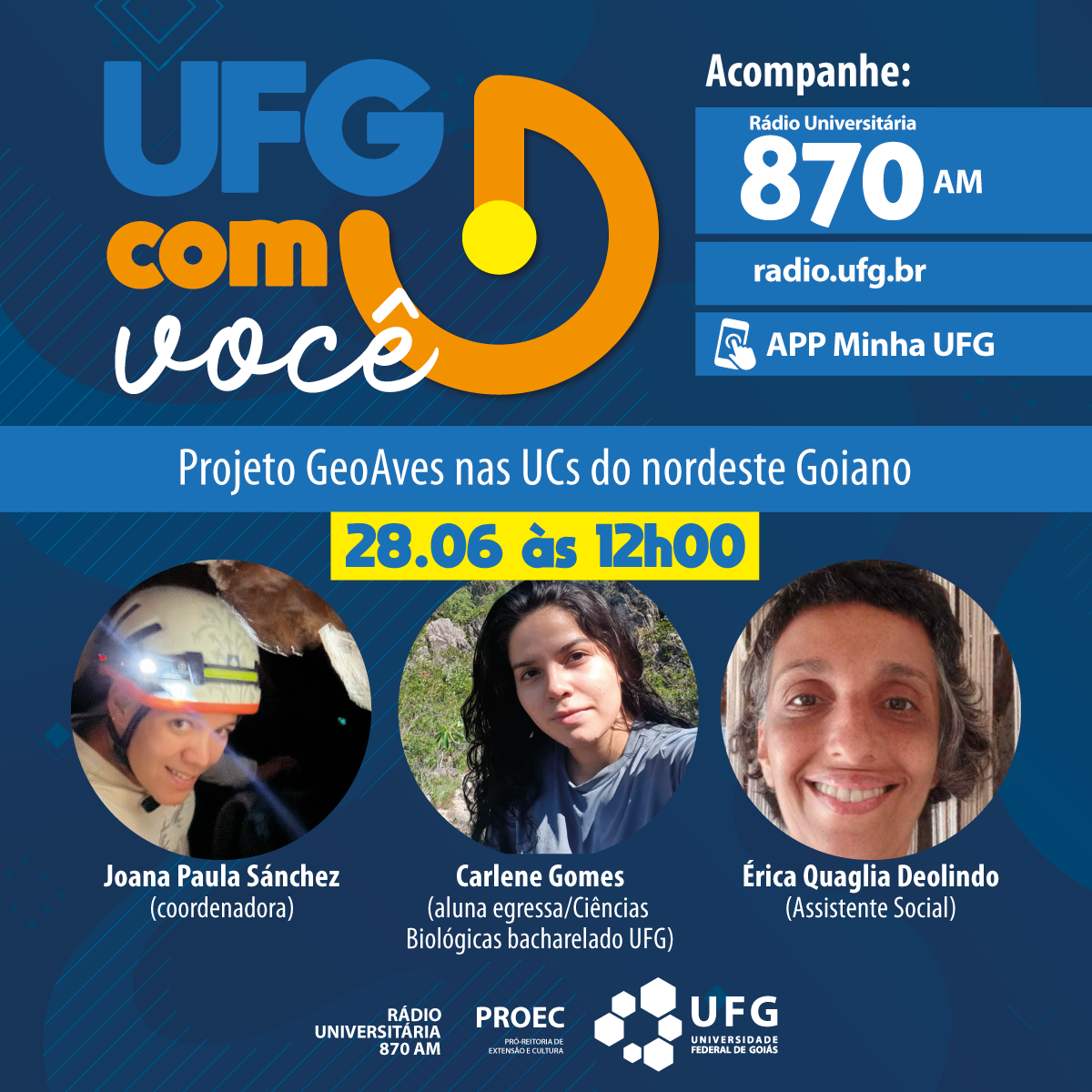 Programa UFG com você - Projeto GeoAves nas UCs do nordeste goiano 事件 Local: Rádio Universitária 870 AM 活动日期 : 28 , 2023 at 12:00 TweetWhatsApp 全部列出 Back