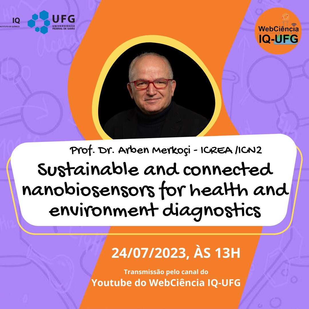 Webnário "Sustainable and connected nanobiosensor for health and environment diagnostics" Event Local: Transmissão pelo Canal do YouTube do WebCiência IQ-UFG Event date : July 24, 2023 at 13:00 Formulário de inscrição: INSCRIÇÃO Webinário 10 (24/07/2023) (google.com) Transmissão pelo Canal do YouTube do WebCiência IQ-UFG TweetWhatsApp List all Back