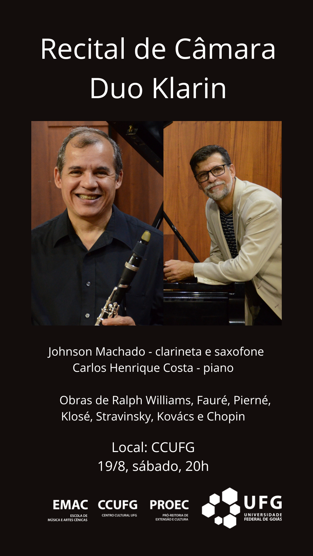 Recital de Câmara Duo Klarin Événement Local: Centro Cultural UFG Date de l'événement : 19 Agosto 2023 às 20:00 TweetWhatsApp Liste tous Voltar