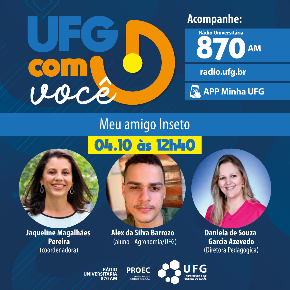 Programa UFG com você - Meu amigo Inseto Event Local: Rádio Universitária 870 AM Event date : October 04, 2023 at 12:30 TweetWhatsApp List all Back