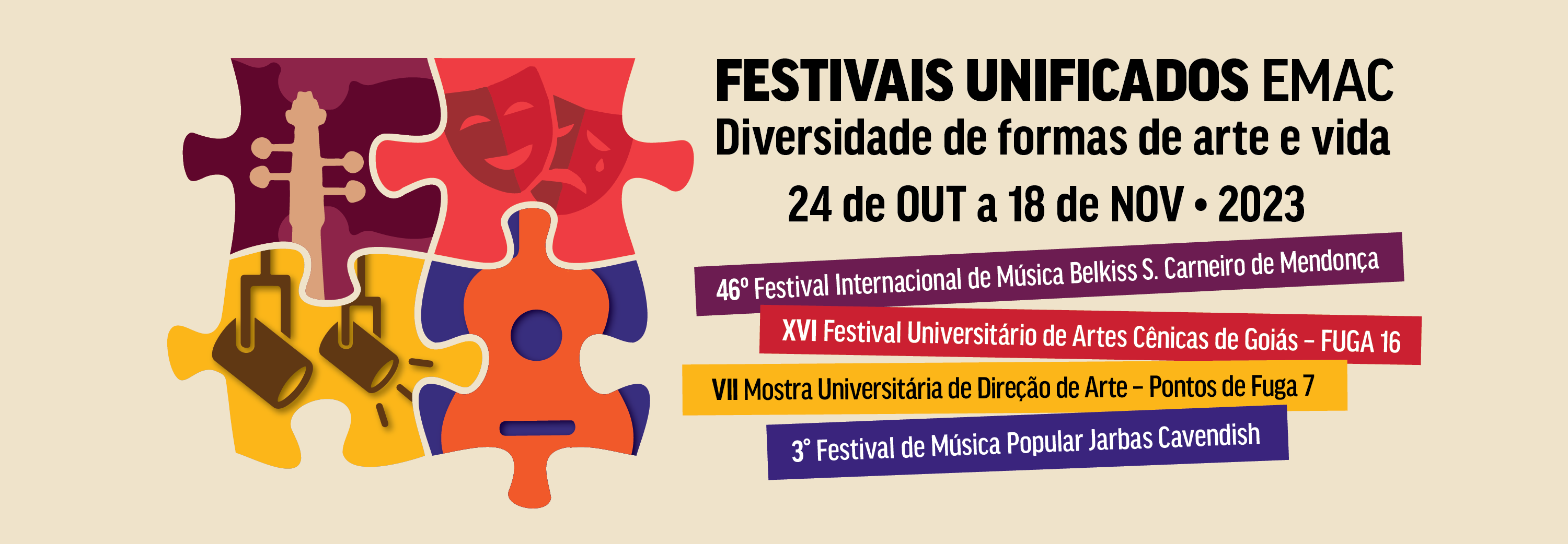 Estes quatro grandes projetos unificados, que aqui designamos pelo título de Festivais Unificados da EMAC: Diversidade de Formas de Arte e Vida são por ordem histórica de criação: o 46º Festival Internacional de Música Belkiss S. Carneiro de Mendonça, o XVI Festival Universitário de Artes Cênicas de Goiás - FUGA 16, a VII Mostra Universitária de Direção de Arte – Pontos de Fuga 7, e o III Festival de Música Popular Jarbas Cavendish. A realização unificada destas quatro ações artísticas é a celebração da diversidade de expressões e formas de vida e arte.