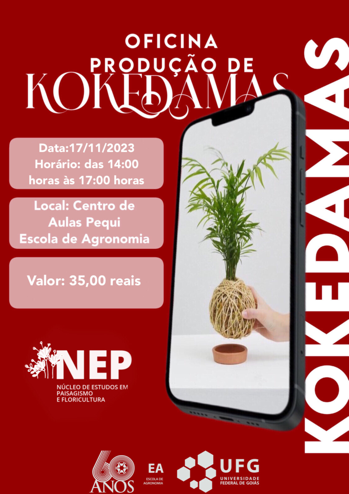 O Núcleo de Estudos em Paisagismo e Floricultura (NEP) da Escola de Agronomia da UFG realizará, no dia 17/11/2023 (sexta-feira), uma oficina de Kokedama, técnica japonesa que fornece uma alternativa para suspender, sem nenhum tipo de jardineira, espécies de plantas que precisam de terra. O objetivo é disseminar a arte da jardinagem para os interessados. A Oficina contará com coffee break, certificado de participação e sorteio de brindes.