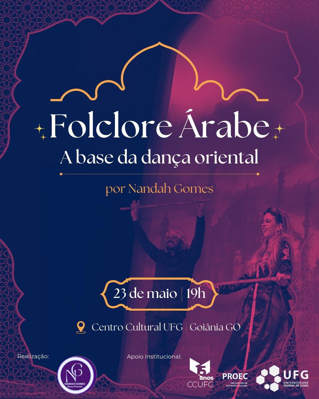 Idealizado pela professora, bailarina e coreógrafa Nandah Gomes, "Folclore Árabe: a base da dança oriental" é um espetáculo que fala da riqueza da cultura árabe através da dança. Mostrar que existem diversos estilos de vida, condições étnicas, geográficas e históricas, promovendo uma compreensão mais profunda de suas tradições, narrativas e identidades que moldaram essa expressão artística ao longo do tempo.