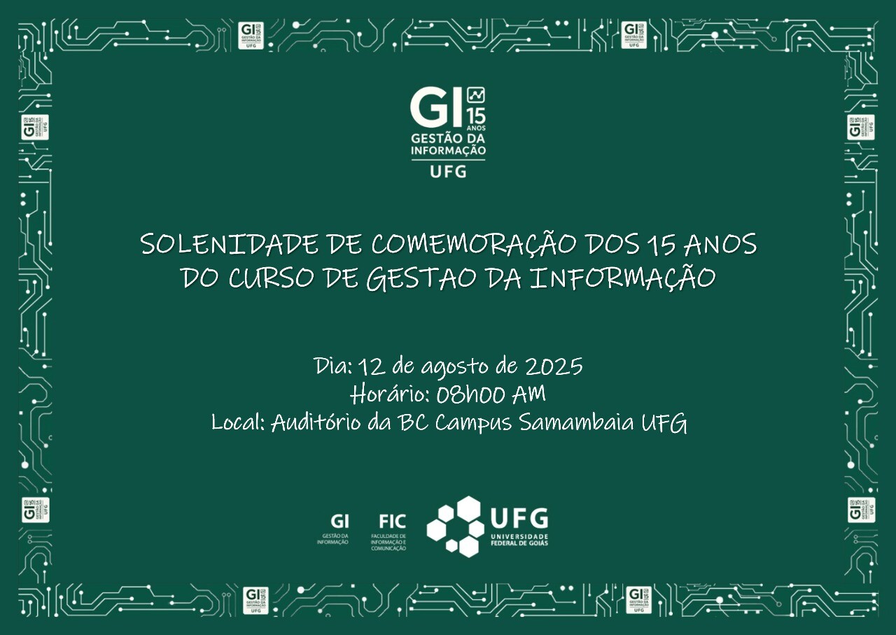 15 anos do Curso Gestão da Informação 事件 Local: Auditório da Biblioteca Central da UFG, Câmpus Samambaia 活动日期 : 12 , 2025 at 08:00 TweetWhatsApp 全部列出 Back