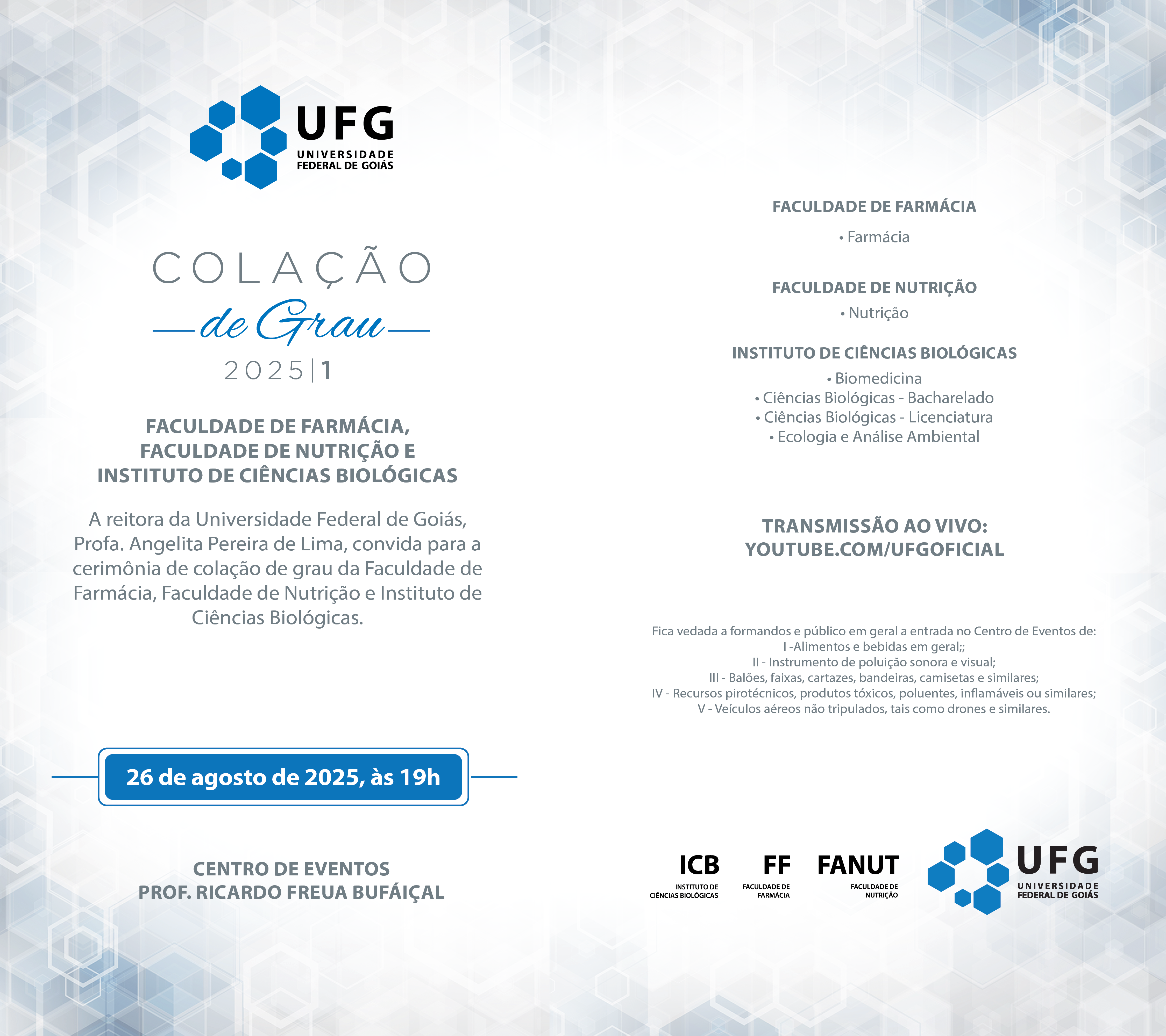 Colação de Grau 2025/1: Faculdade de Farmácia, Faculdade de Nutrição e Instituto de Ciências Biológicas