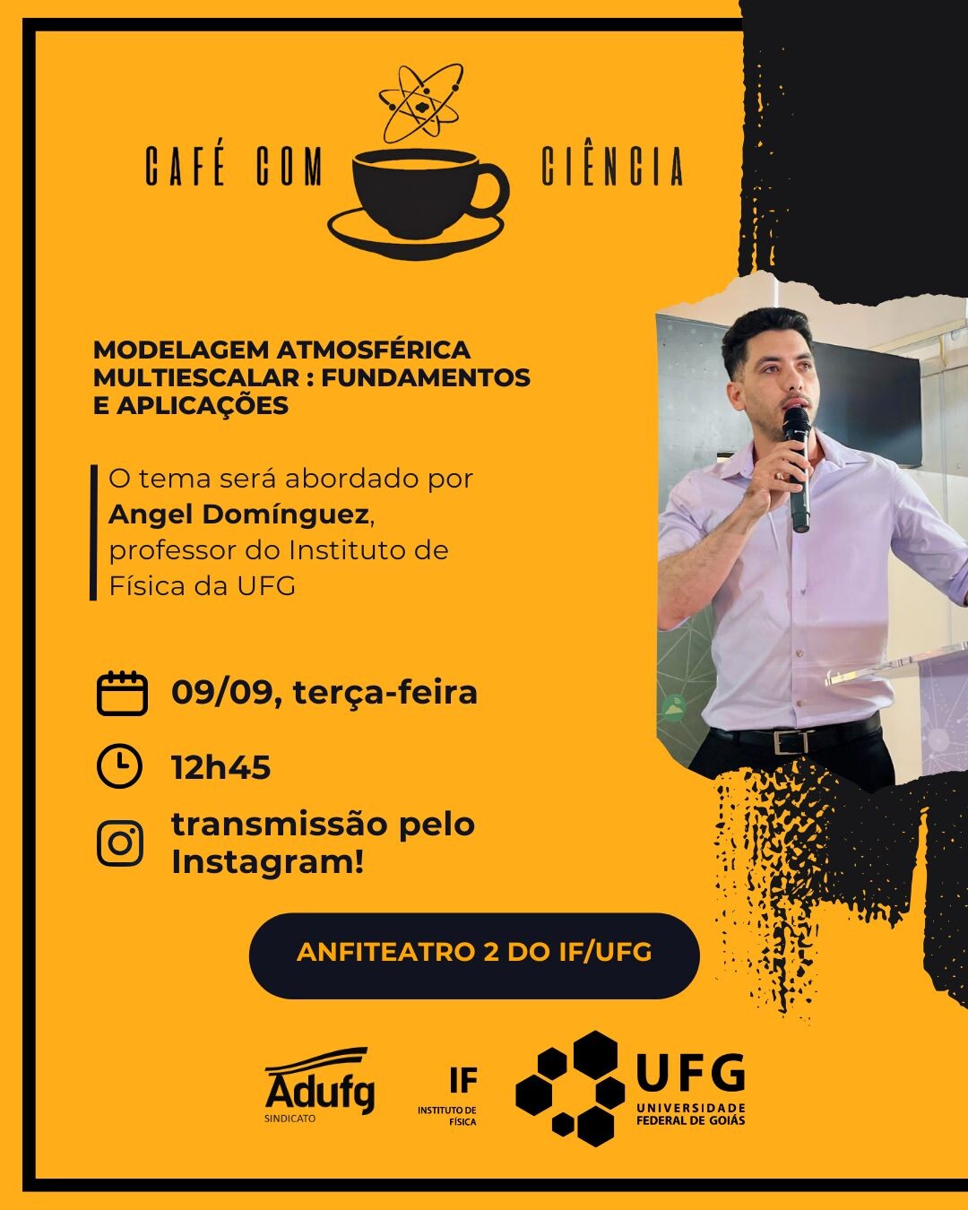 Na terça-feira, dia 9/9, o Café com Ciência do Instituto de Física da UFG recebe o professor Angel Domínguez Chovert, para apresentar os princípios da modelagem atmosférica multiescalar, uma das ferramentas mais poderosas para previsão numérica de tempo, clima e qualidade do ar.