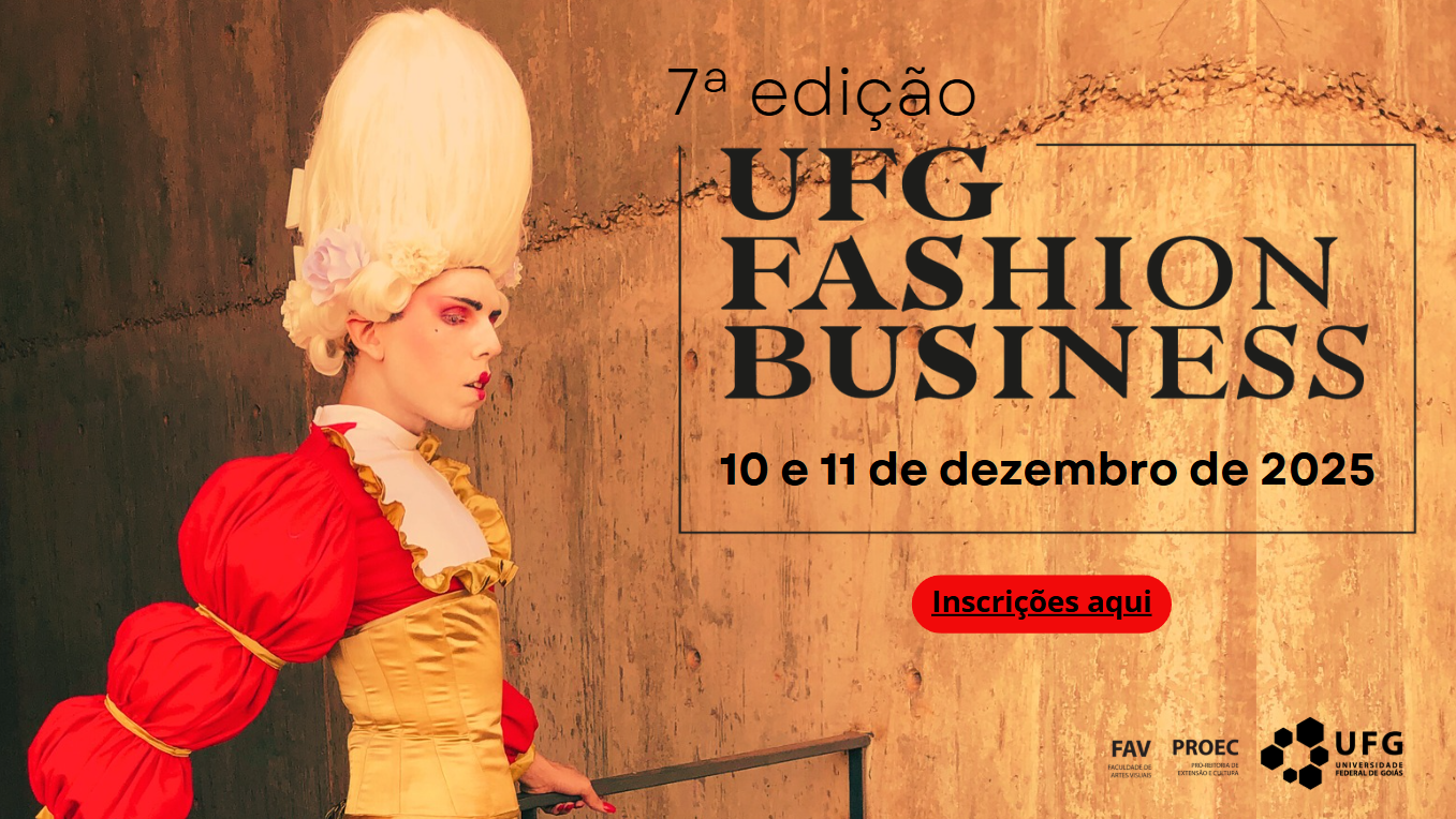 O UFG Fashion Business é um projeto de extensão do curso de Design de Moda da Faculdade de Artes Visuais (FAV) e sua sétima edição será realizada nos dias 10 e 11/12, no Hub Goiás. No intuito de desenvolver trabalhos que proporcionem maior imersão ao mercado profissional, estímulo ao empreendedorismo e inovação, o evento tem como foco principal fomentar o protagonismo discente ao colocar os estudantes como agentes ativos nas fases de um negócio de moda: da criação às noções básicas da gestão.