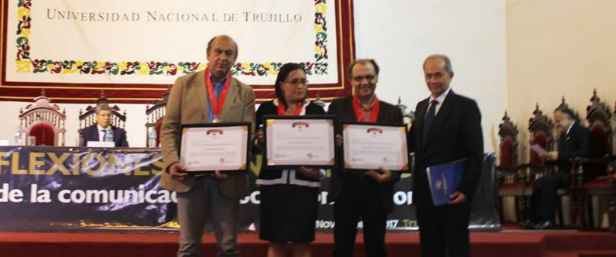 O professor da Faculdade de Informação e Comunicação (FIC/UFG), professor Magno Medeiros, recebeu no dia 23 e 24 de novembro três premiações no Peru, durante o Congresso Internacional de Investigação em Comunicação Social na Universidade Nacional de Trujillo. Ele recebeu o diploma de honra e medalha da Universidade Nacional de Trujillo, o Diploma de Honra do Município de Trujillo e o Diploma e Medalha de Honra ao Mérito do Colegio de Periodistas del Peru. As premiações foram concedidas por seu papel no fortalecimento da investigação científica e da formação acadêmico-profissional de comunicadores sociais, como autor de publicações e também pela organização de diversos eventos na área.