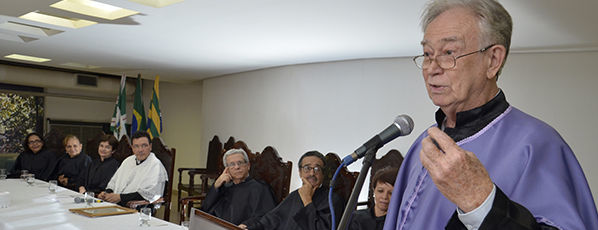 Geraldo Faria durante a cerimônia de recebimento do título de Professor Emérito da UFG