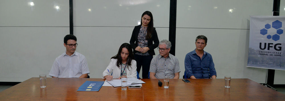 O Instituto de Matemática e Estatística da Universidade Federal de Goiás (IME/UFG) celebrou na tarde de terça-feira (20/3) a posse dos professores Maurício Donizetti Pieterzack e Ronaldo Antônio dos Santos como diretor e vice-diretor da unidade, respectivamente. O primeiro, que comandou a gestão anterior, foi reconduzido ao cargo, enquanto que o segundo assumiu no lugar de Fabiano Fortunato dos Santos.