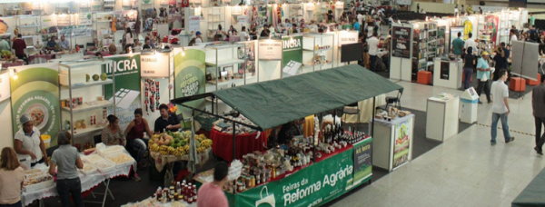 Espaço de comercialização das cooperativas da agricultura familiar durante a 15ª Agro Centro-Oeste Familiar 2017, realizada na UFG