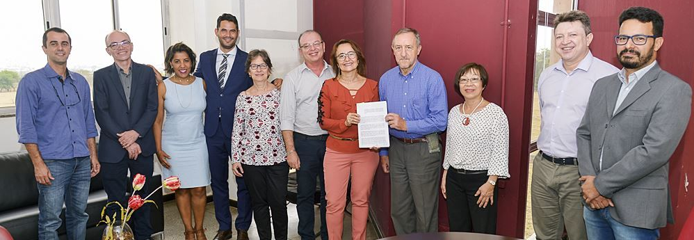 A vice-reitora da Universidade Federal de Goiás, Sandramara Chaves, juntamente com pró-reitores, secretários e o Diretor de Relações Internacionais, Francisco Quaresma receberam na tarde do dia 19 de setembro, o professor Jean Marchal, da Universidade de Liege, na Bélgica. Também estavam presentes a ex-coordenadora de assuntos internacionais, Ofir Bergemann, que auxiliou no início da produção do convênio, o professor Cristiano Almeida da Faculdade de Ciência e Tecnologia (FCT) que é um dos interlocutores do convênio, o Diretor da FCT, Júlio César Soares e a professora Yaeko Yamashita da Universidade de Brasília (UnB), que também é uma das instituições parceiras no convênio multilateral. Além da UnB e UFG participam a Universidade Federal do Tocantins e o IESB.