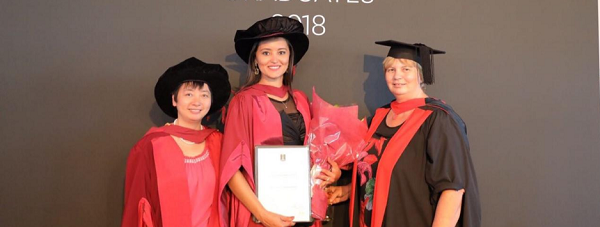 A tese apresentada na Austrália abordou estudos relacionados ao processamento de produtos para saúde e à limpeza e desinfecção de superfícies de serviços de saúde, e foi premiada com o "2017 Dean's Award for Excellence in Higher Degree Research". O prêmio é concedido anualmente pela Macquarie University às melhores teses produzidas nas diferentes áreas do conhecimento.