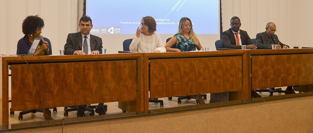 A vice-reitora da UFG, Sandramara Matias Chaves, apresentou um breve histórico da reserva de vagas aqui na instituição e destacou que a UFG é uma das pioneiras no uso do sistema de inclusão. “Nós temos uma universidade que abriu as portas aos estudantes por meio das cotas raciais, mas sabemos que não basta incluir, o nosso desafio agora também é combater a evasão. Além disso, é nosso dever garantir que as vagas sejam reservadas a quem realmente tem direito a elas,” enfatizou.