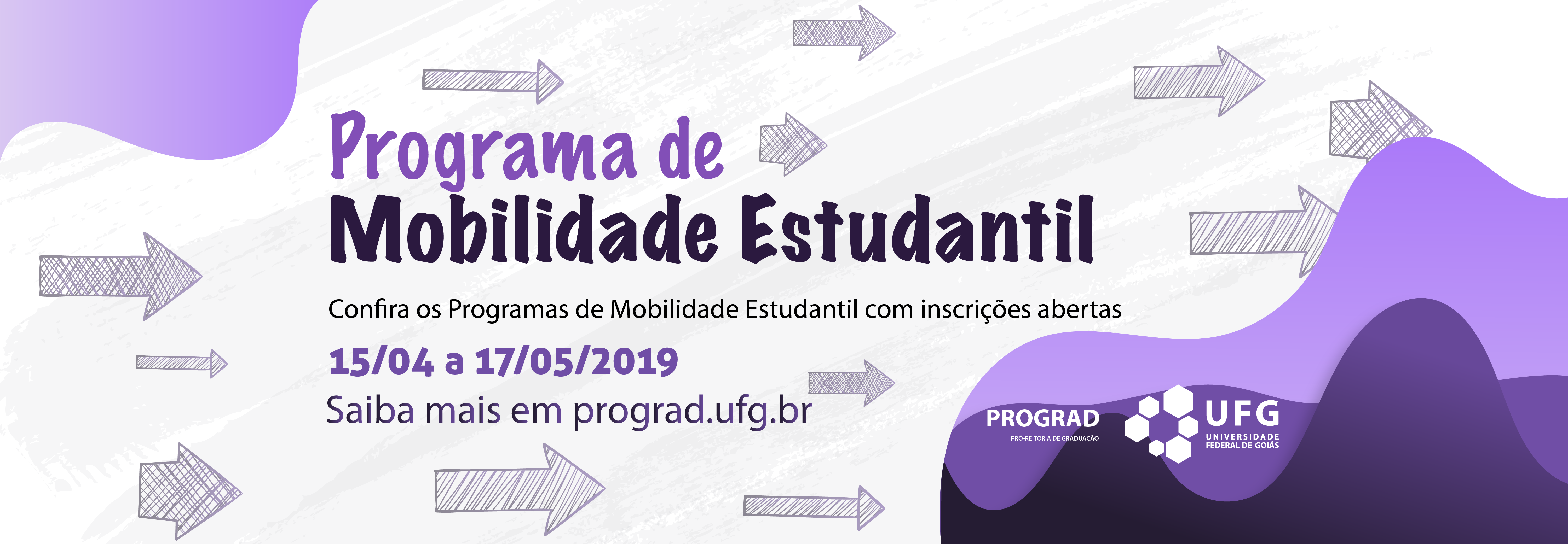 A Pró-reitoria de Graduação (Prograd/UFG) informa que estão abertas até o dia 17 de maio as inscrições para o Programa de Mobilidade Estudantil (PME) e o Programa de Mobilidade Acadêmica (PMIPES).
