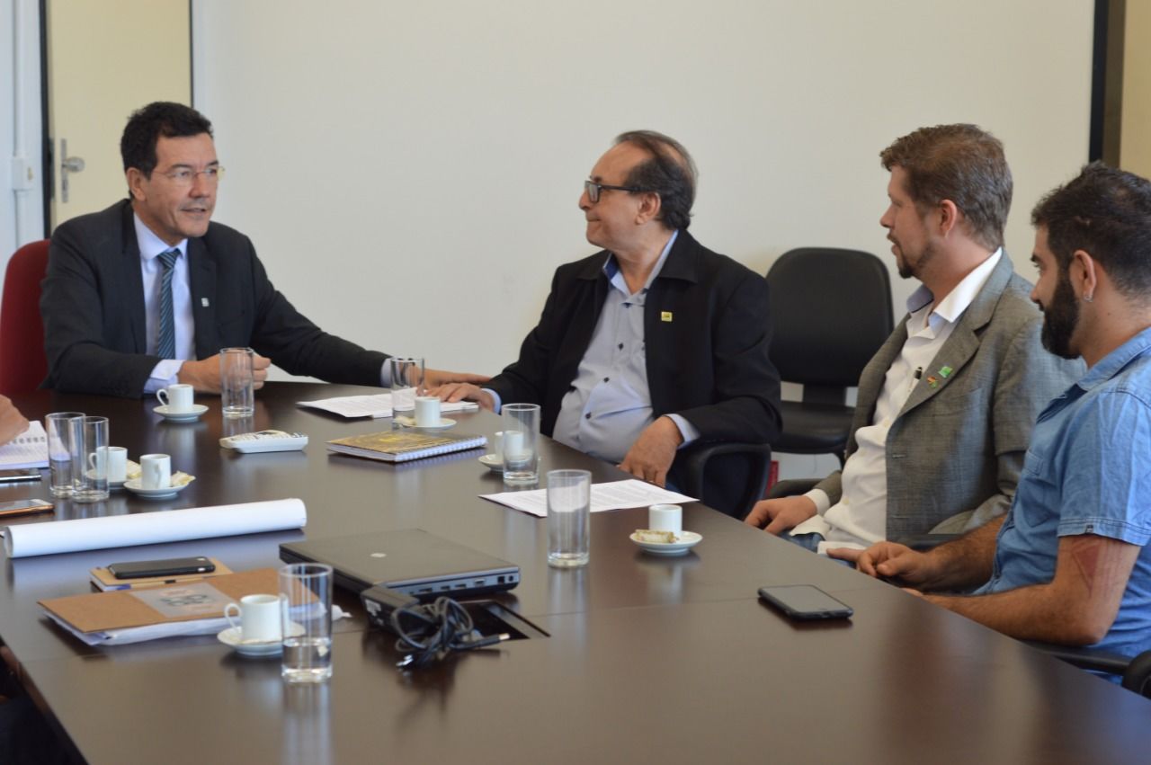 O titular da Secult, Edival Lourenço, e o superintendente de Fomento e Incentivo à Cultura da pasta, Guilherme Wohlgemuth, participaram de reunião na sexta-feira (30/8), na UFG, representada pelo reitor Edward Madureira, a Pró-reitora de Extensão e Cultura (Proec), Lucilene de Sousa, a pró-reitora adjunta da Proec, Flávia Cruvinel, o diretor do Centro de Cultural da UFG (CCUFG), Kleber Damaso, e o diretor Centro Editorial e Gráfico da UFG (Cegraf), Anselmo Pessoa Neto.