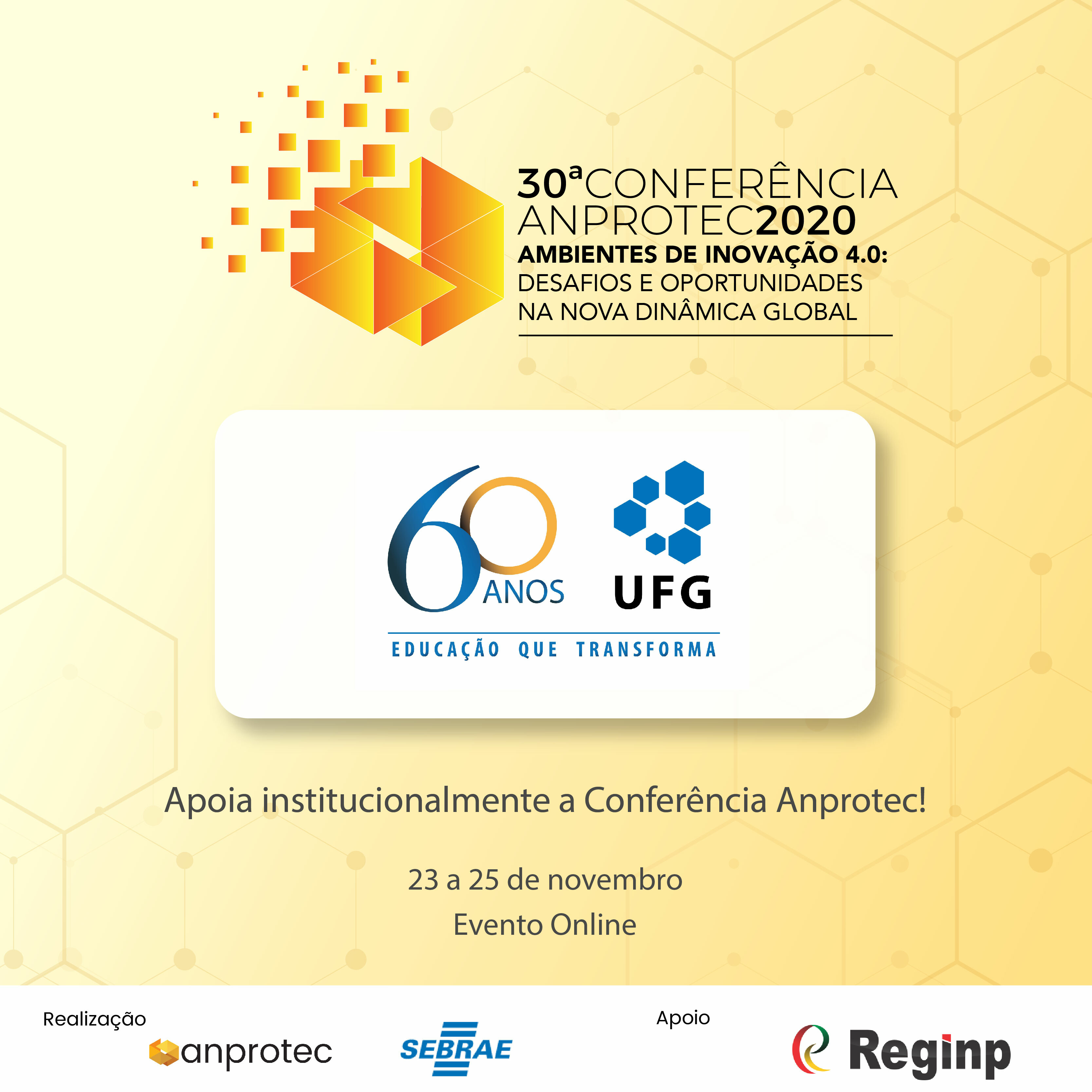 UFG é apoiadora institucional da 30ª Conferência Anprotec 2020, que acontece de 23 a 25 de novembro