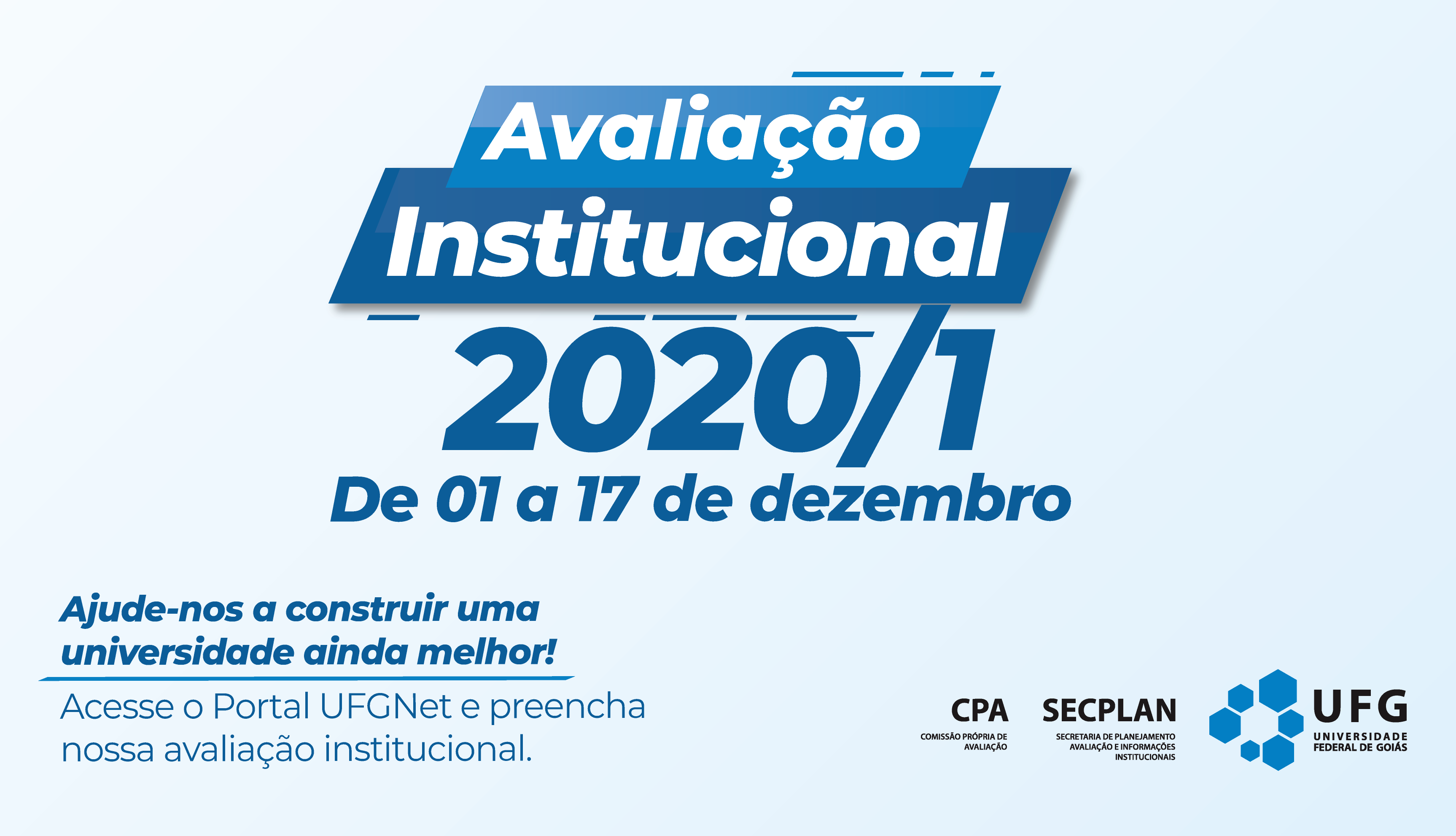 Entre os dias 1º e 17 de dezembro a comunidade universitária da UFG é convidada a responder ao questionário online de Avaliação Institucional referente ao semestre de 2020/1 para os cursos de graduação presencial e 2020/2 para os cursos de graduação EaD. O processo avaliativo é sigiloso e pode ser realizado por meio do Sigaa no Portal UFGnet. O objetivo é contribuir para a melhoria da instituição, aperfeiçoamento da prática pedagógica docente e autoconhecimento dos participantes.