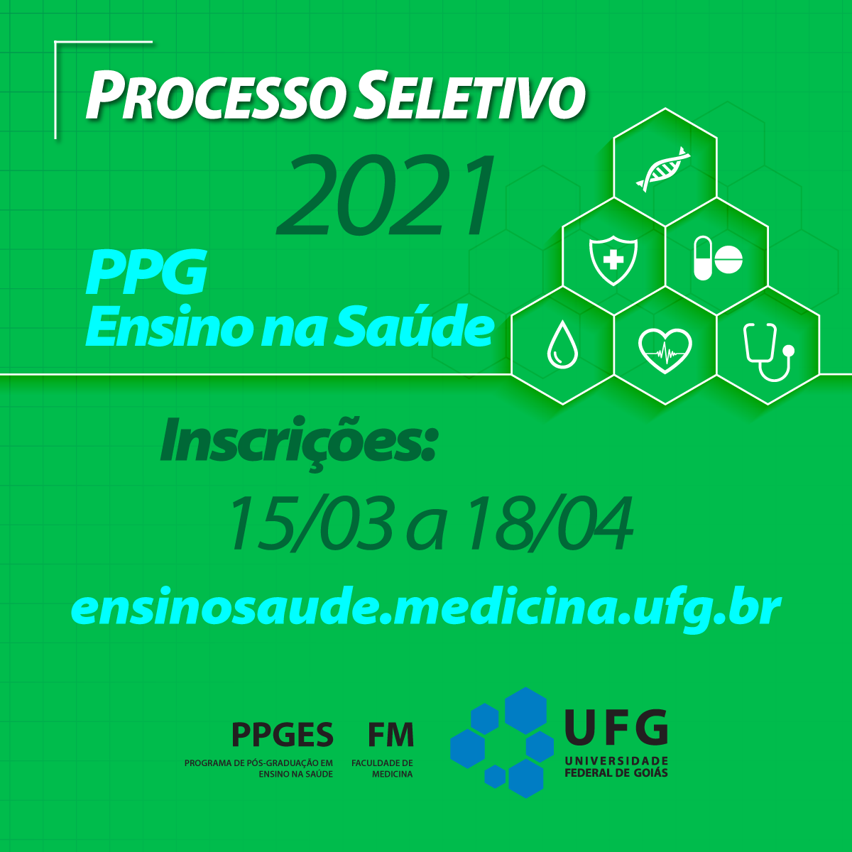 A Coordenadoria do Programa de Pós-Graduação em Ensino em Saúde (PPGES), da Faculdade de Medicina da Universidade Federal de Goiás, torna pública as normas do Processo Seletivo 02/2021 para o preenchimento de vagas no primeiro semestre letivo de 2021, no nível de Mestrado, em conformidade com as exigências do Regulamento do PPGES previsto na Resolução CEPEC Nº 1490/2017, da Resolução Cepec Nº 1403/2016, da Resolução Consuni Nº 07/2015, Portaria Nº 1049/2019.