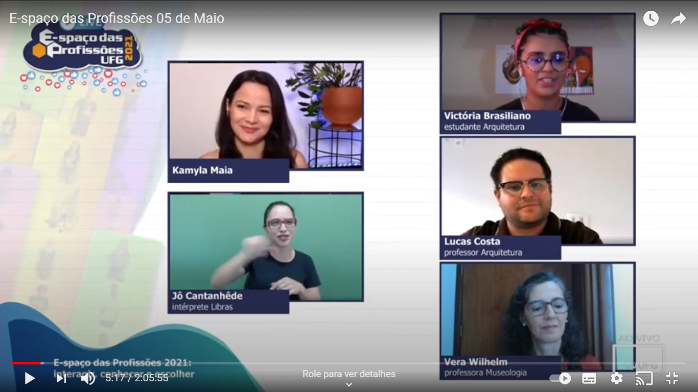 Todo o material desta e de outras edições do Espaço das Profissões UFG pode ser acessado pelo Youtube, Canal Oficial da UFG, por meio de playlists especiais do evento.