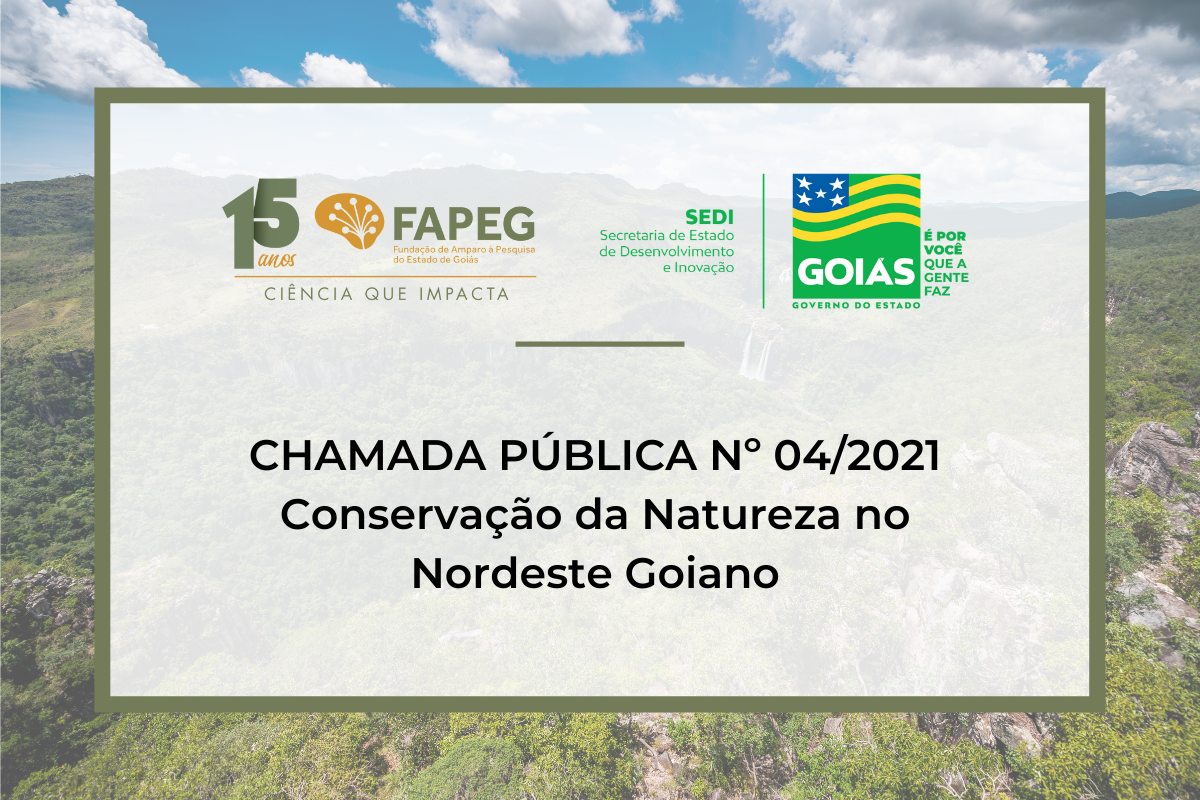 A Fundação de Amparo à Pesquisa do Estado de Goiás (Fapeg) publicou a Chamada Pública 04/2021 em parceria com a Fundação Grupo Boticário de Proteção à Natureza, que tem como objetivo apoiar iniciativas inovadoras que contribuam para a conservação da natureza no Nordeste Goiano. O prazo para submissão das propostas segue até o dia 4 de outubro.